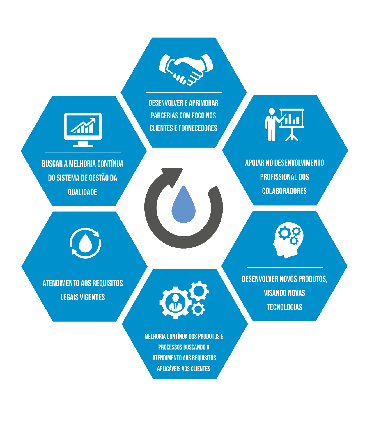 BOMSISTEMA®, atuante no projeto, desenvolvimento, fabricação e comercialização de bombas, tubos, conexões, incorporadores e componentes para pulverização agrícola e industrial, assume o compromisso de buscar o aperfeiçoamento do sistema de gestão da qualidade e processos, com foco nos seguintes objetivos: