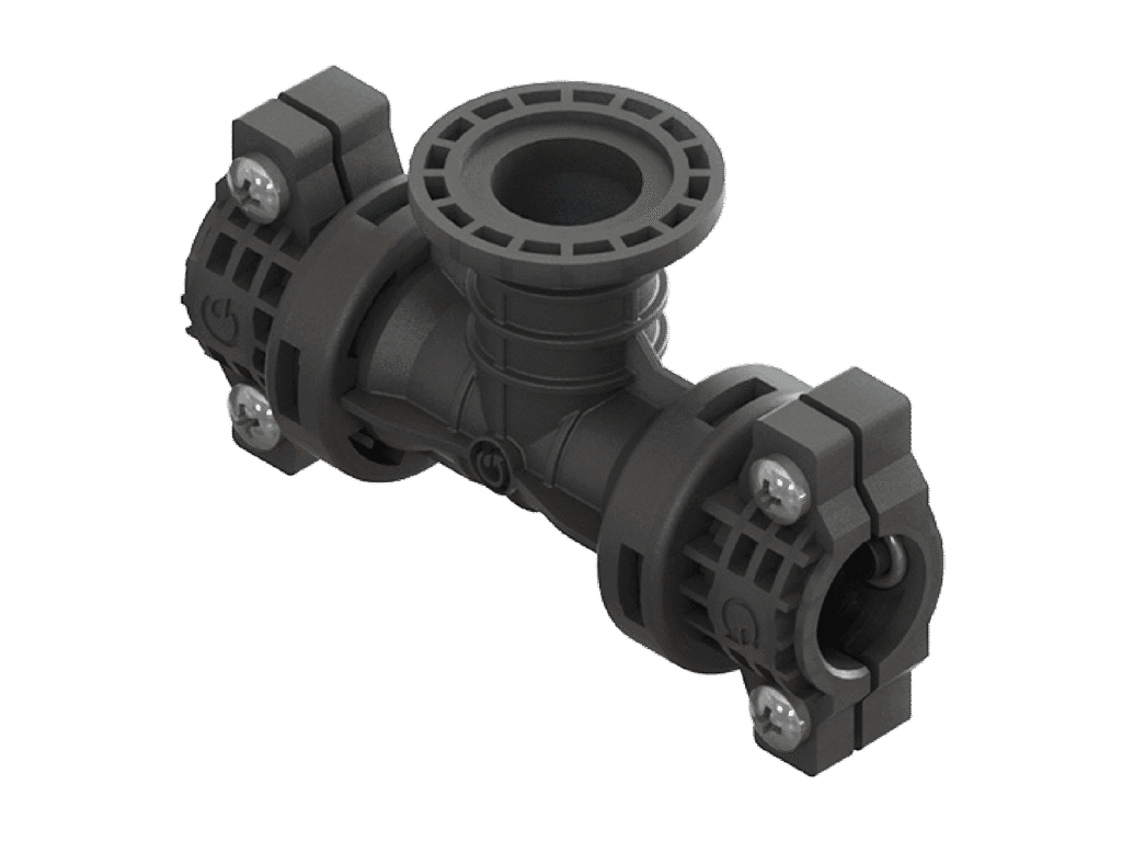O TEE QuickFit® garante derivações seguras e de fácil montagem em sistemas de pulverização. Desenvolvido em polímero de engenharia, oferece resistência contra produtos químicos e impactos, garantindo a estanqueidade mesmo em condições severas de uso.