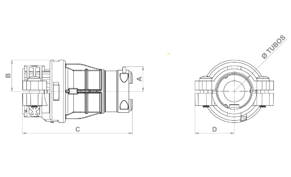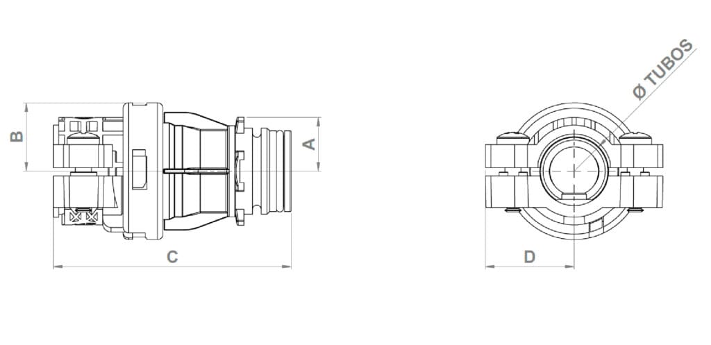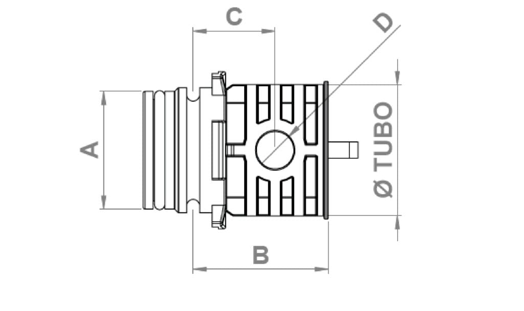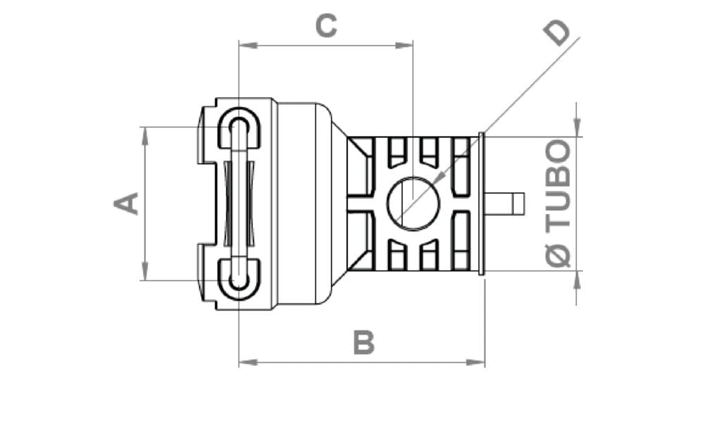 | CÓDIGO | A mm | B mm | C mm | D mm | TUBO (Ø EXT) | H | ||