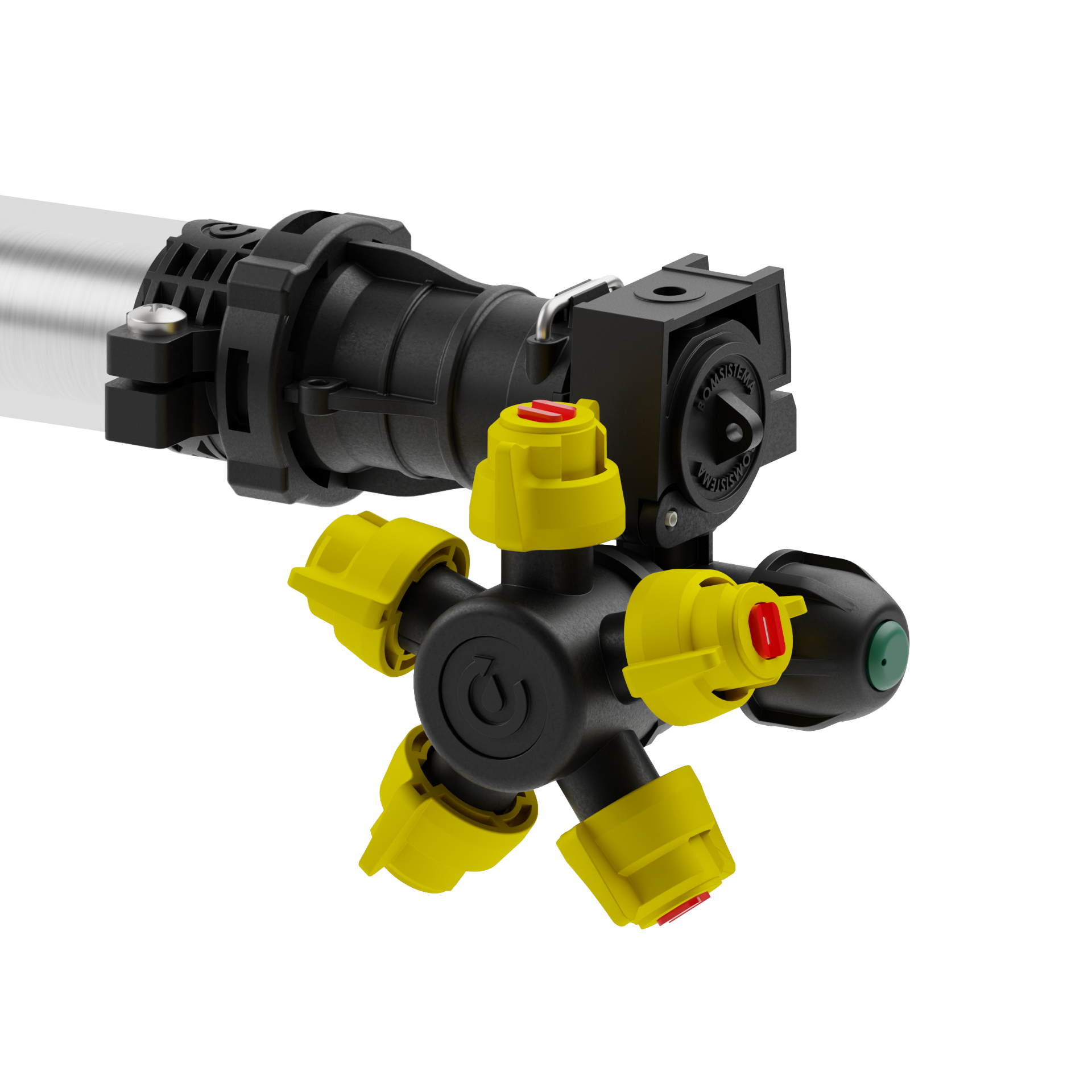 O Corpo de Bicos QuickFit® foi desenvolvido para garantir a perfeita fixação dos bicos de pulverização, mantendo alinhamento e vedação eficiente. Seu design otimizado reduz riscos de vazamento e assegura uniformidade na aplicação.