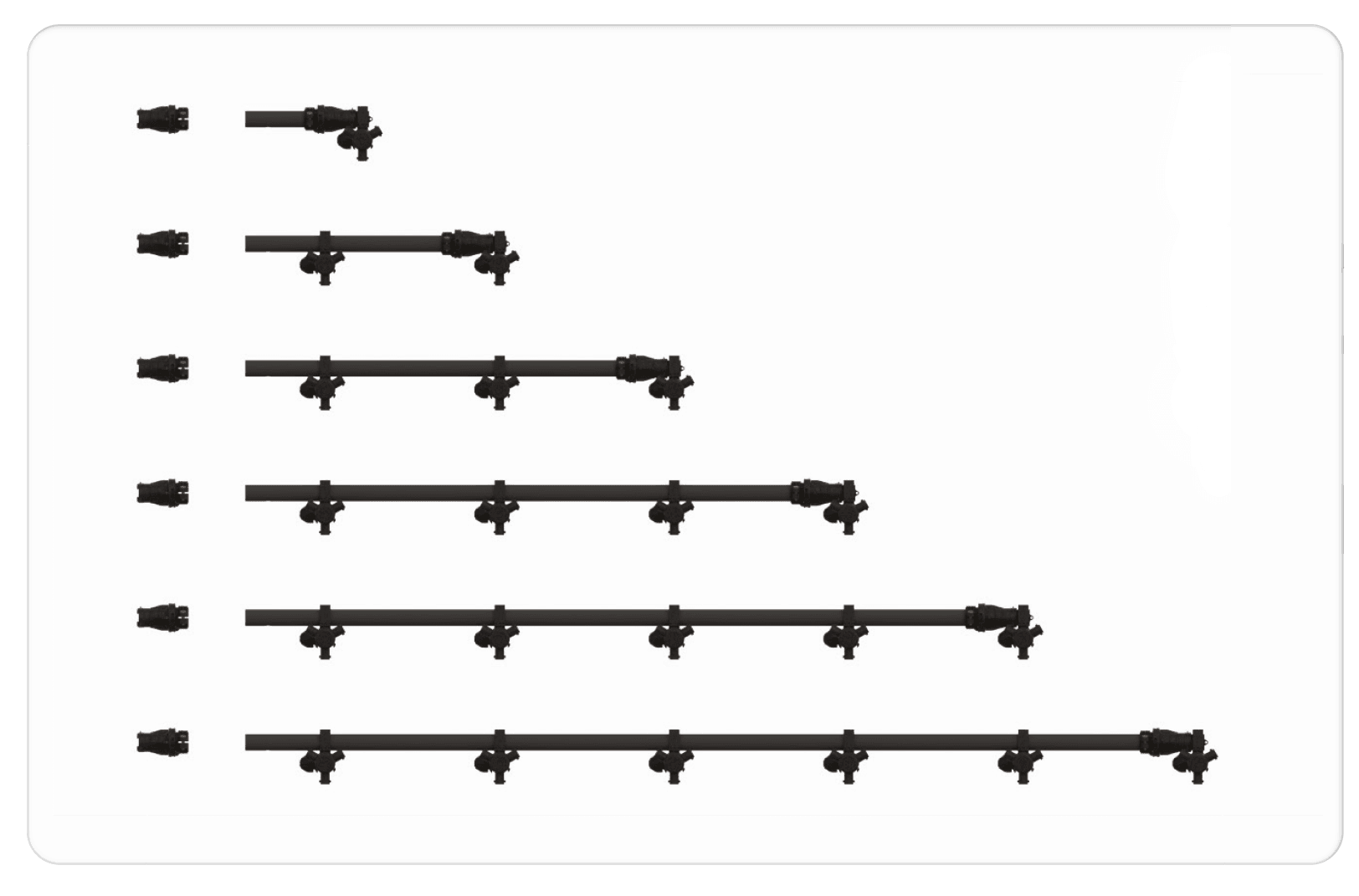 Escolha a melhor configuração de distância entre os furos da barra e os acessórios de engate rápido mais adequados para cada tipo de montagem.